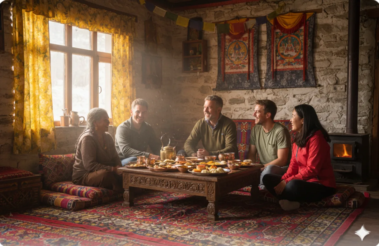 Enjoy hot soup and local bread by the shore — warmth tastes better when surrounded by Himalayan silence.